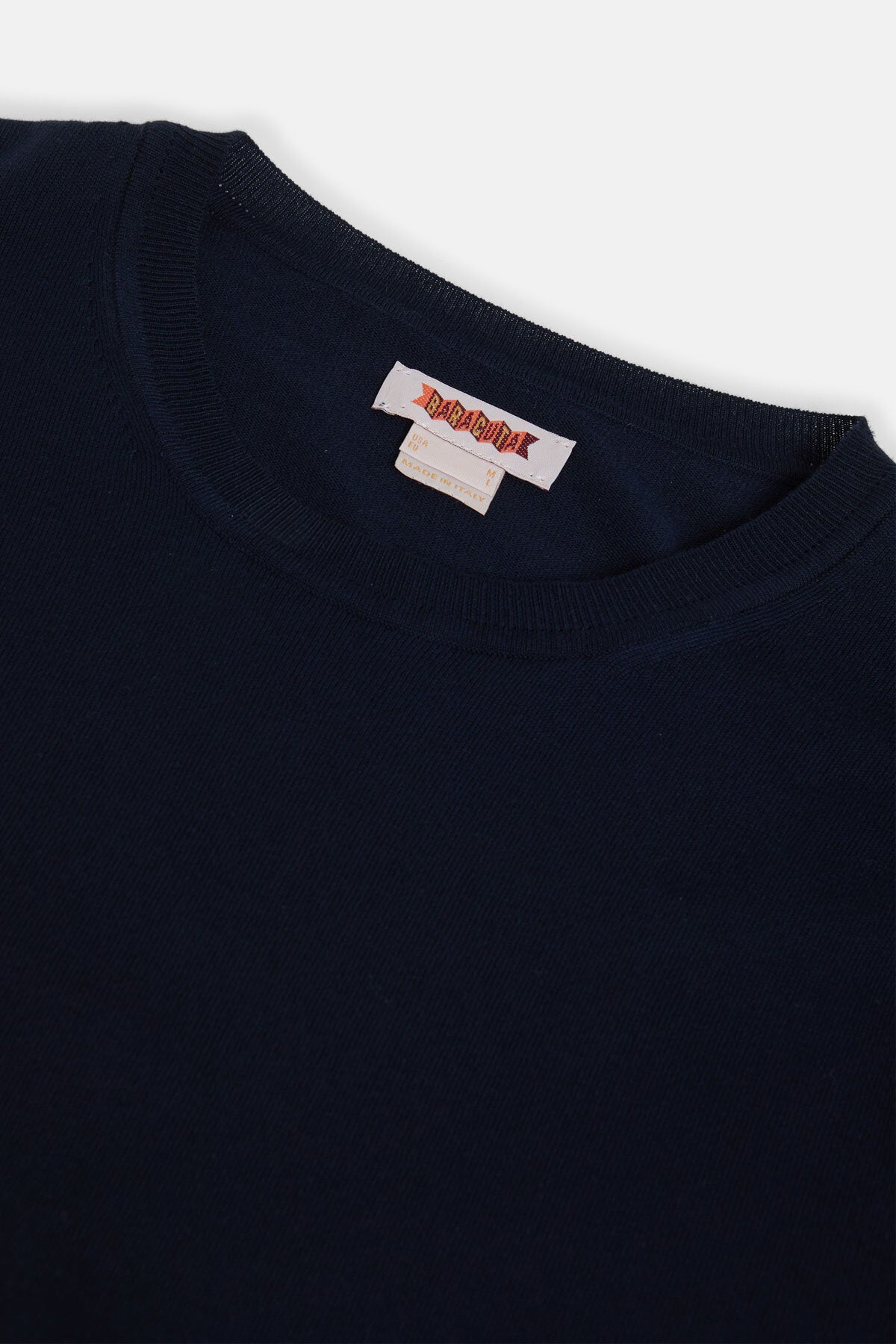 Das Strick-T-Shirt besteht aus 100 % Baumwolle und bietet ein weiches, atmungsaktives Tragegefühl und ein sauberes, strukturiertes Finish.