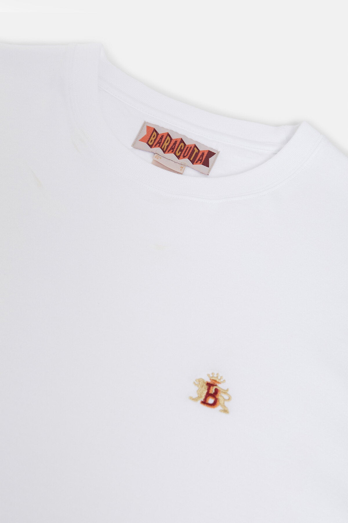 Zu jeder G9 gehört ein T‑Shirt. Dieses Crewneck‑Tee mit Rundhalsausschnitt aus 100% Baumwolle ist weich, atmungsaktiv und auf Langlebigkeit ausgelegt. Das auf der Brust gestickte Baracuta‑Logo setzt einen dezenten, charakteristischen Akzent – perfekt für den täglichen Gebrauch.