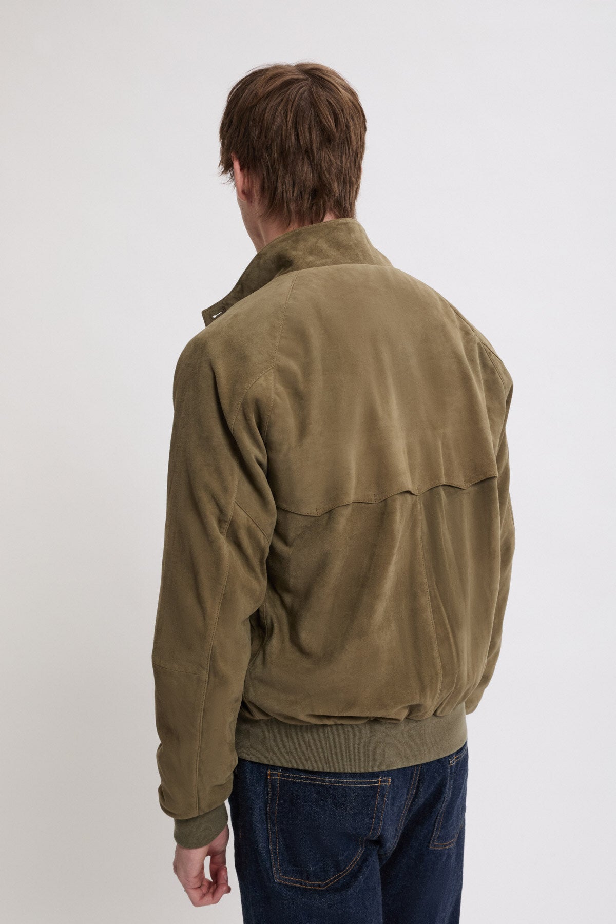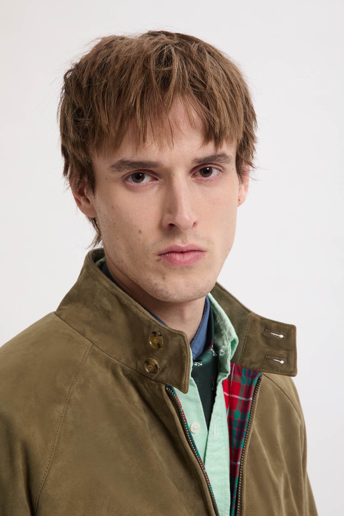 • You can never go wrong with a Suede Jacket. The G9 Suede is the classic Harrington Jacket in fine suede. This garment has made a name for itself and become extremely popular over the years due to its versatility, making it a real style icon. It features our breathable Fraser Tartan lining made from Coolmax® fabric, two-button dog ear collar, slanted side pockets, our signature umbrella back yoke, and ribbed cuffs, waistband and inner collar.