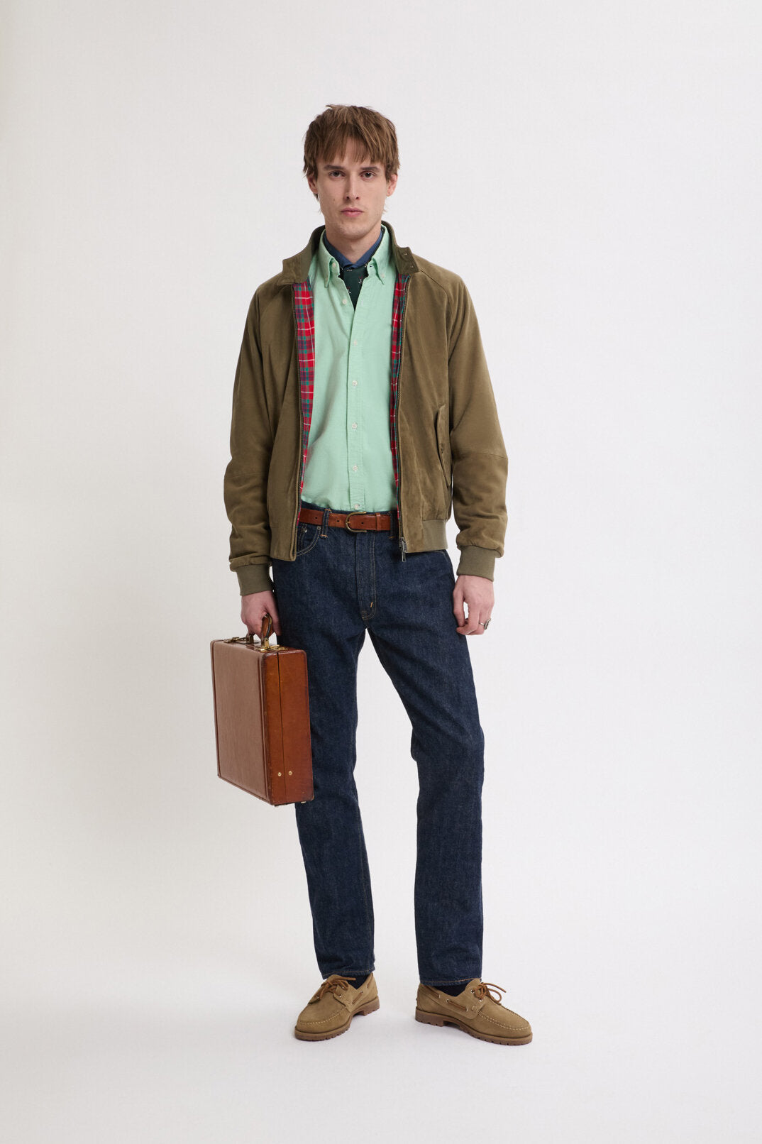 You can never go wrong with a Suede Jacket. The G9 Suede is the classic Harrington Jacket in fine suede. This garment has made a name for itself and become extremely popular over the years due to its versatility, making it a real style icon. It features our breathable Fraser Tartan lining made from Coolmax® fabric, two-button dog ear collar, slanted side pockets, our signature umbrella back yoke, and ribbed cuffs, waistband and inner collar.